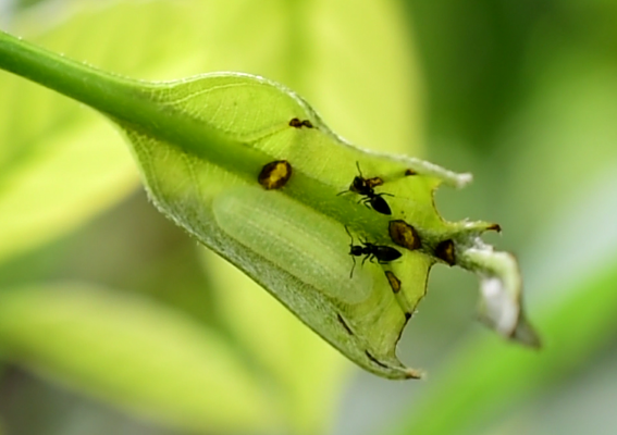 - 卵產於殼斗科的芽點上以破開的鱗片縫隙